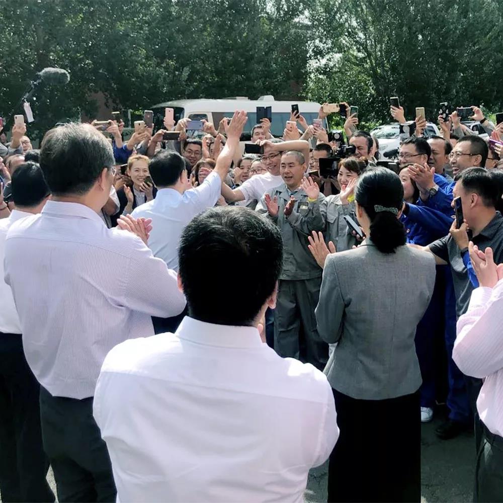 走出車間,聞?dòng)嵹s來的職工爆發(fā)出熱烈的掌聲,高呼:“總理好,哈藥歡迎您”??偫砀吲d地與職工們一一握手,并發(fā)表了熱情洋溢的講話??藦?qiáng)總理說:“希望哈藥傳承光榮歷史,為人民群眾用藥提供基本保障,而且要保障基本用藥價(jià)格的平穩(wěn),老百姓、患者能用得起,但更重要的是希望藥品保證質(zhì)量,有明顯療效,讓我們的人民更加健康!”
