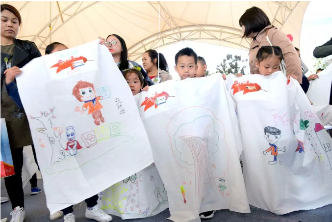 200多名小朋友在長(zhǎng)卷上盡情繪畫