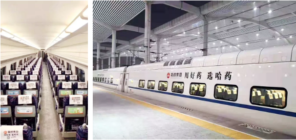 哈藥集團(tuán)冠名的高鐵列車(chē)通過(guò)車(chē)體包裝、車(chē)內(nèi)語(yǔ)音播報(bào)、LED滾動(dòng)屏展示哈藥品牌和列車(chē)內(nèi)門(mén)貼、桌貼、海報(bào)等產(chǎn)品宣傳與品牌傳播形式,以及車(chē)廂內(nèi)座椅枕巾的電商二維碼與消費(fèi)者形成了互動(dòng),全面達(dá)到了動(dòng)靜結(jié)合,品銷(xiāo)合一的傳播效果。