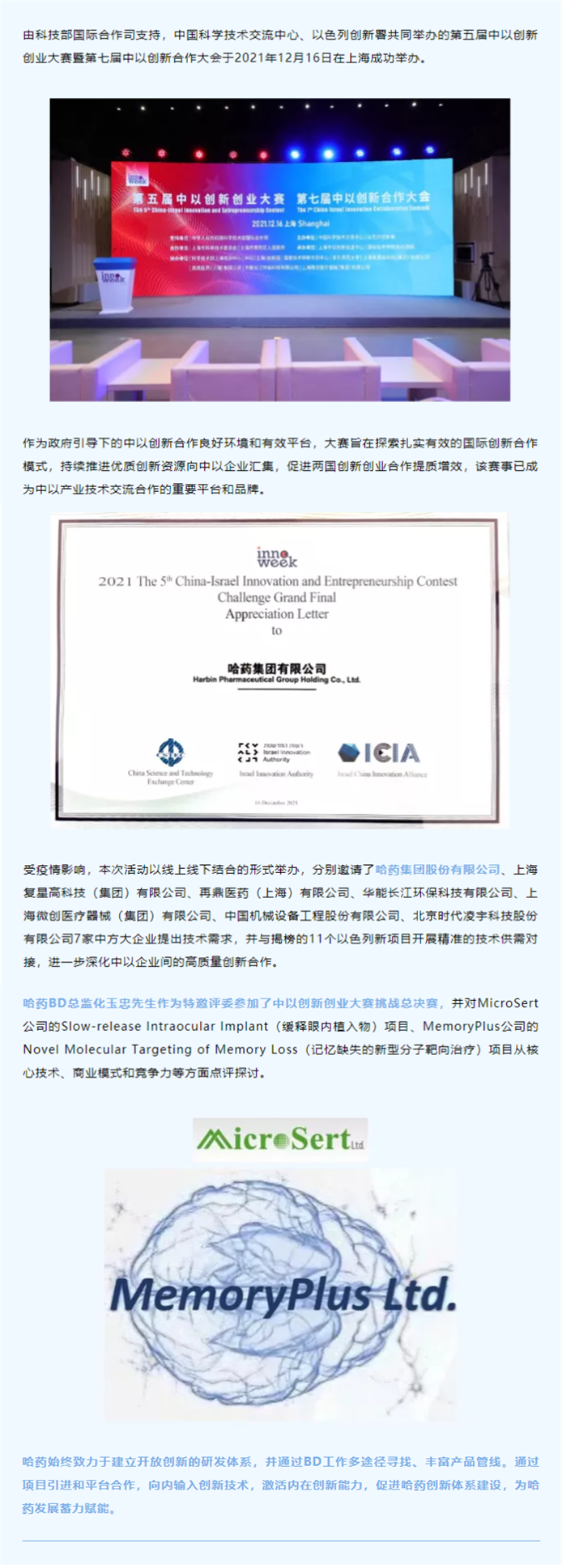 哈藥參加中以創(chuàng)新創(chuàng)業(yè)大賽挑戰(zhàn)決賽